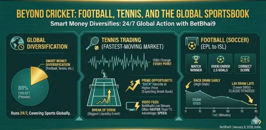 While 80% of our users come for cricket, the smart money often diversifies. BetBhai9 runs 24/7, covering sports globally.