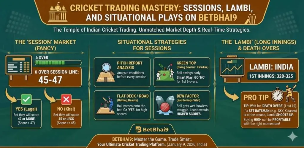 The “Fancy” Market: You aren’t just betting on who wins. You are predicting: Will India score 50 runs in the first 6 overs? Will Kohli score a 50? This is where cricket knowledge truly pays off.