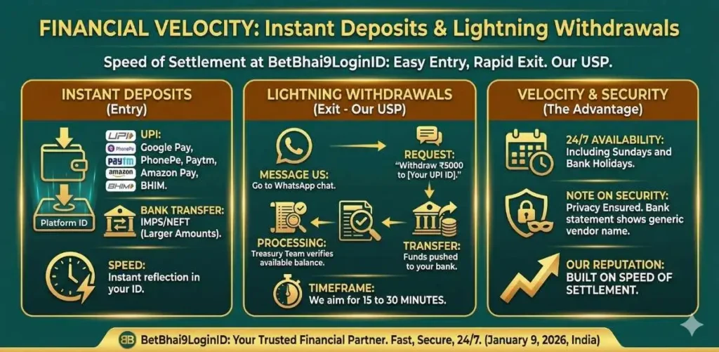 In the world of online IDs, “Entry” is easy. “Exit” is where the problems usually happen. This is where we distinguish ourselves from the generic competitors. At BetBhai9LoginID, we have built our reputation on Speed of Settlement.